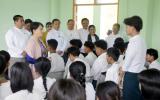 The Union Minister for Education, Dr. Chaw Chaw Sein, together with the Deputy Minister U Nay Myo Hlaing, Directors General, and responsible officials, visited the Basic Education and Industrial, Agricultural, and Livestock High School (MRTV) in Thawta Village, Tatkon Township, Ottarathiri District, Nay Pyi Taw Union Territory, this morning. They inspected students’ learning activities and delivered words of encouragement.