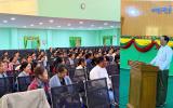 Deputy Minister for Education U Nay Myo Hlaing met with instructors and trainees of the Education Administration Course No. (8/2026) at the Education Management Training School (Yangon) this morning at the school’s Pyinnyar Yadanar Hall.
