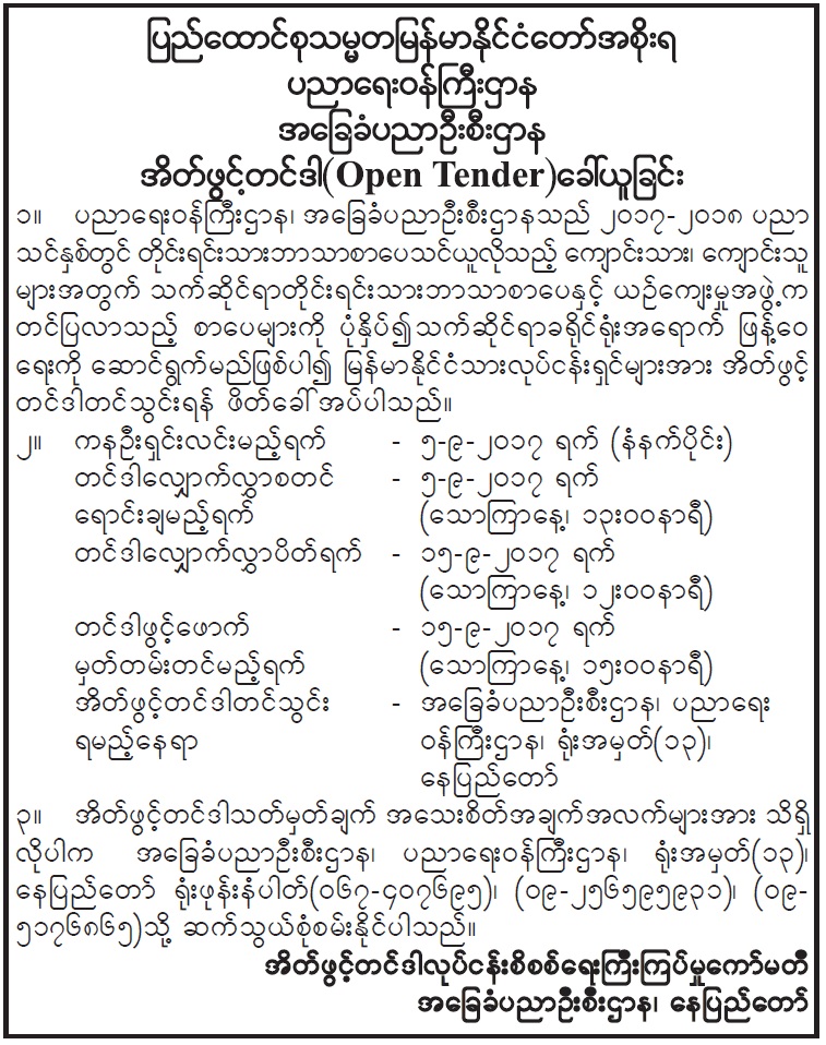 Ministry of Education, The Republic of the Union of Myanmar. All Rights Reserved.