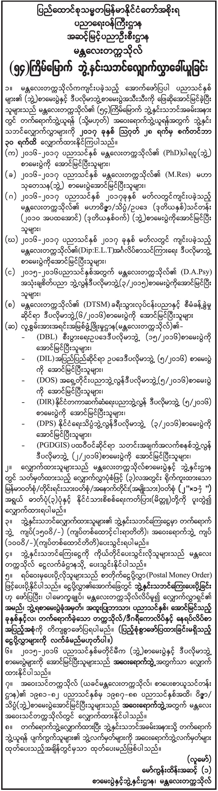 အစိုးရစက်မှုလက်မှုသိပ္ပံ၊ သံတွဲမြို့၊ ရခိုင်ပြည်နယ် အိတ်ဖွင့်တင်ဒါခေါ်ယူခြင်း Type: တင်ဒါကြေညာချက်များ