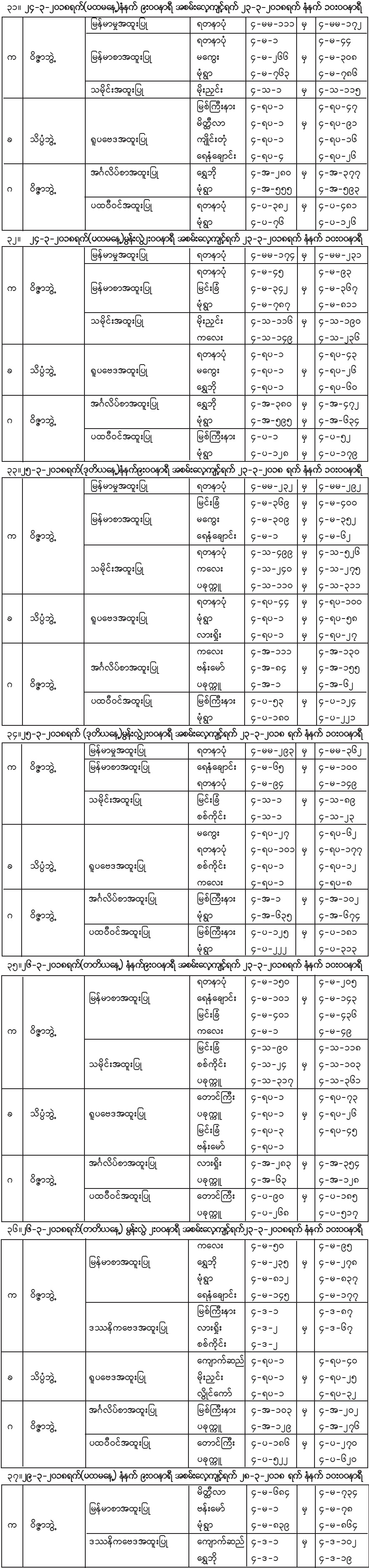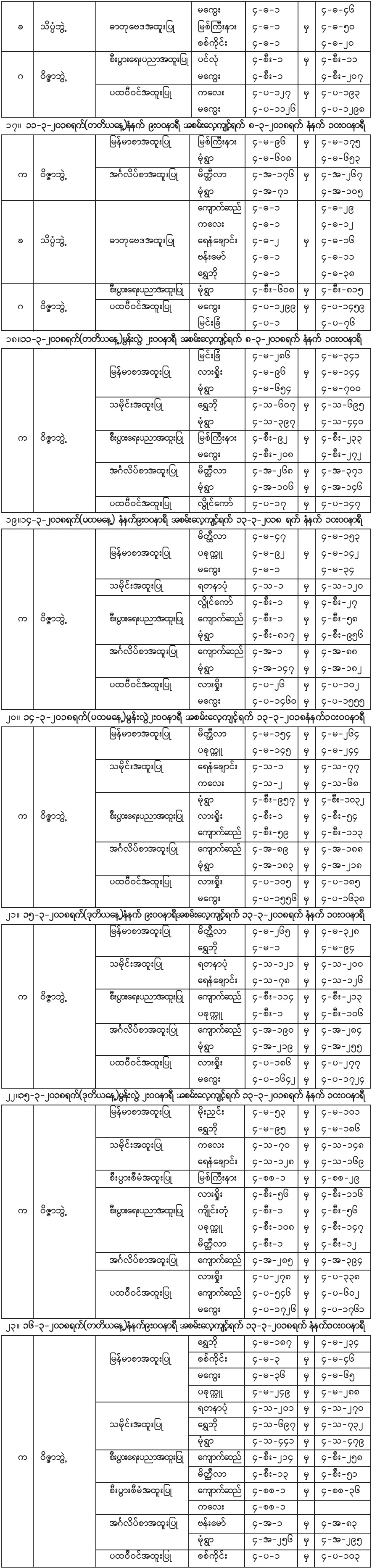 ဦးစီးအရာရှိ(ကာယ)ရာထူးသို့ ရာထူးတိုးလျှောက်ထားသူများ၏ လုပ်သက်ရမှတ်နှင့် စာမေးပွဲရမှတ်တို့၏ စုစုပေါင်းရမှတ်ကြီးငယ်စဉ်အရ တန်းစီဇယား စဉ်ထားပါသည်။