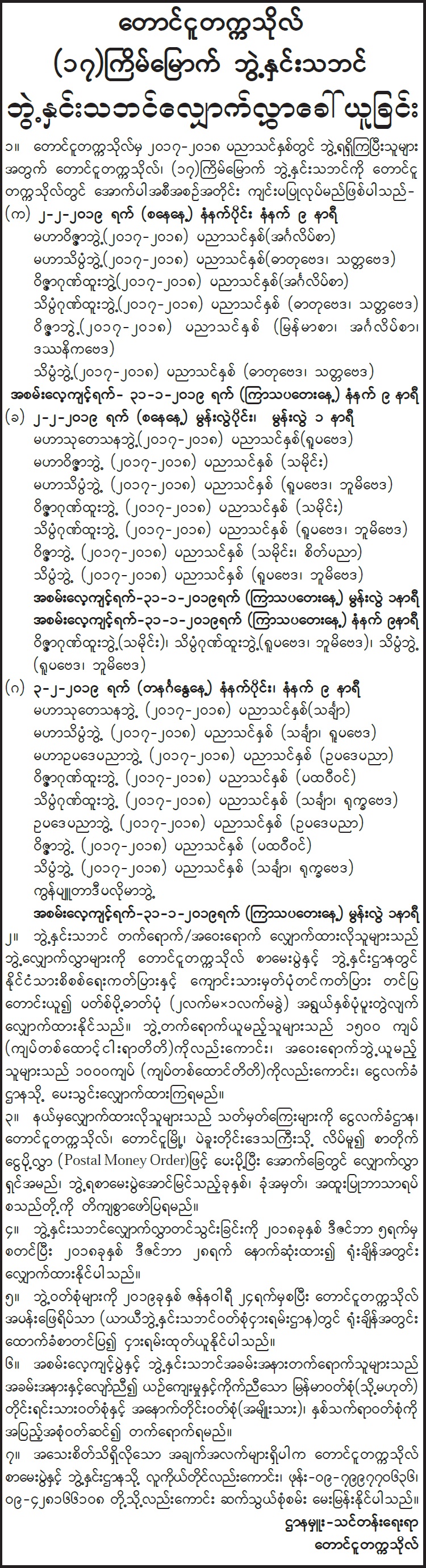 ပခုက္ကူတက္ကသိုလ် (၁၆)ကြိမ်မြောက်ဘွဲ့နှင်းသဘင် ဓာတ်ပုံနှင့်ဗီဒီယိုလုပ်ငန်း အိတ်ဖွင့်တင်ဒါခေါ်ယူခြင်း Type: တင်ဒါကြေညာချက်များ