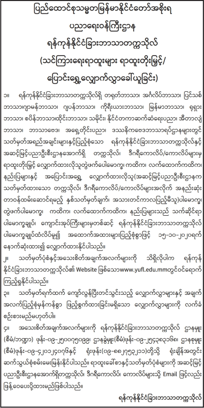 ကယားပြည်နယ်အတွင်းရှိ အခြေခံပညာကျောင်းများတွင် တည်ဆောက်ရေးလုပ်ငန်းများဆောင်ရွက်ရန် အိတ်ဖွင့်တင်ဒါခေါ်ယူခြင်း Type: တင်ဒါကြေညာချက်များ