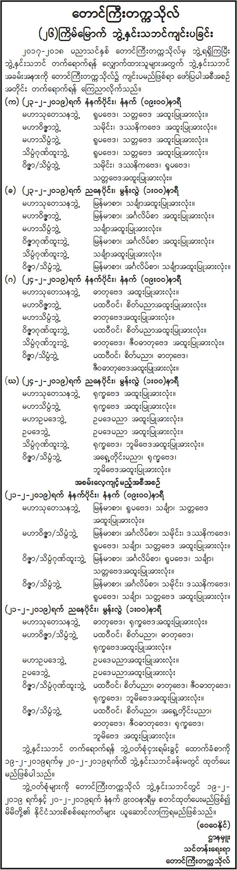 တောင်ကြီးတက္ကသိုလ် (၂၆)ကြိမ်မြောက် ဘွဲ့နှင်းသဘင်ကျင်းပခြင်း