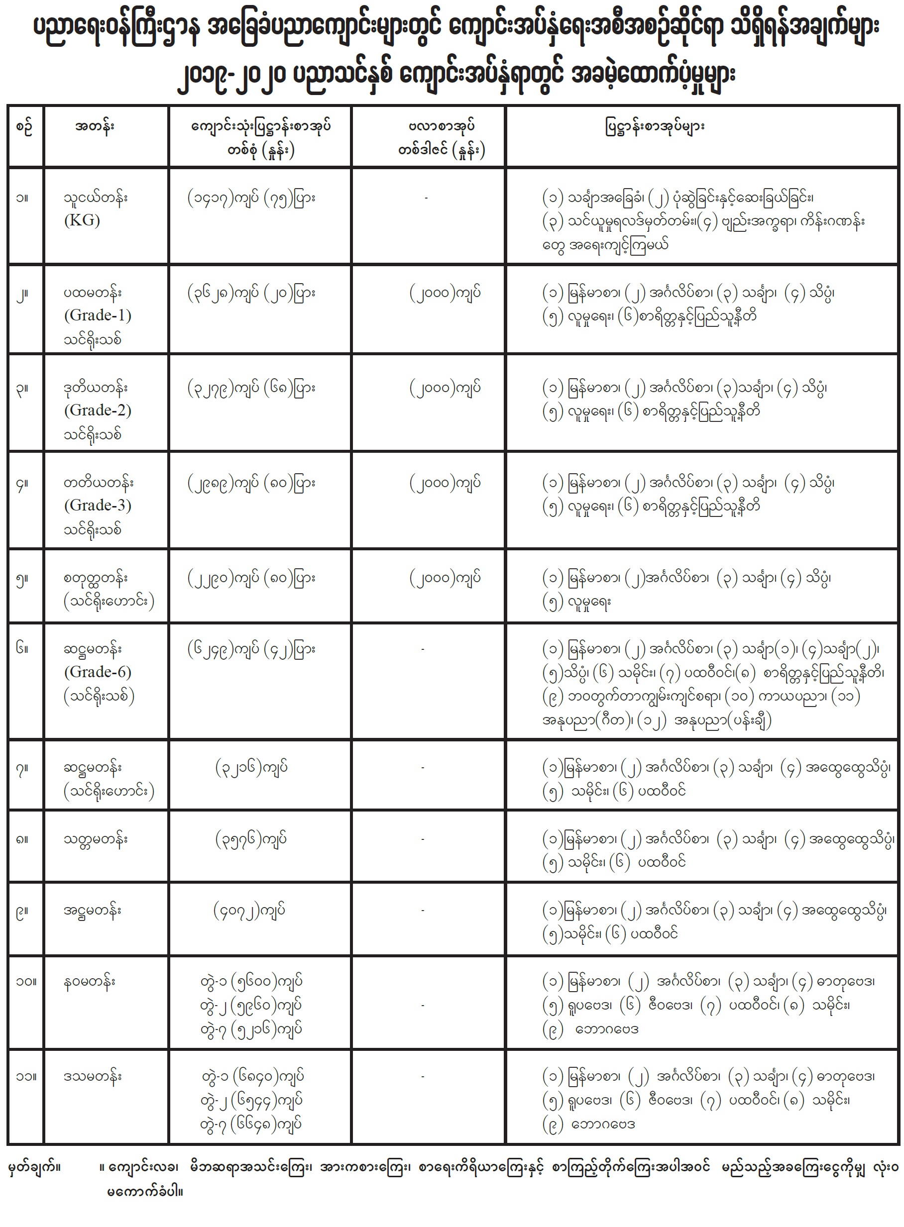 ၂၀၁၉-၂၀၂၀ ပညာသင်နှစ် ကျောင်းအပ်နှံရာတွင် အခမဲ့ထောက်ပံ့မှုများ