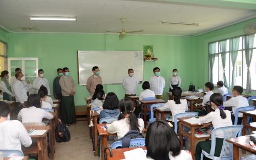 ယင်းနောက် ပြည်ထောင်စုဝန်ကြီးနှင့်အဖွဲ့သည် ဘာသာရပ်ဆိုင်ရာ သင်ကြားသင်ယူနေမှု အခြေအနေများကို လှည့်လည်ကြည့်ရှုအားပေးကြသည်။