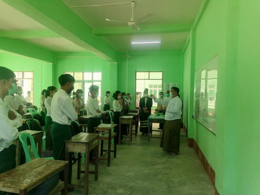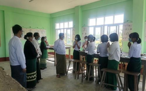 ပညာရေးဝန်ကြီးဌာန ပြည်ထောင်စုဝန်ကြီး ဒေါက်တာညွန့်ဖေသည် ရခိုင်ပြည်နယ် ပညာရေးမှူးနှင့် သက်ဆိုင်ရာ တာဝန်ရှိသူများ လိုက်ပါလျက် ဒီဇင်ဘာ ၁၇ ရက် နံနက် ၁၁နာရီခွဲတွင် သံတွဲမြို့ အမှတ်(၁)အခြေခံပညာ အထက်တန်းကျောင်းသို့ သွားရောက်၍ ကျောင်းသား ကျောင်းသူများ အေးချမ်းပျော်ရွှင်စွာ ပညာသင်ကြားနေမှုများကို ကြည့်ရှုအားပေးသည်။ ထို့နောက် ပြည်ထောင်စုဝန်ကြီးသည် စာသင်ဆောင်များ၊ စာကြည့်တိုက်နှင့် သိပ္ပံခန်းများသို့ သွားရောက်ကြည့်ရှုပြီး လက်တွေ့ခန်းသုံး ပစ္စည်းများနှင့် လိုအပ်ချက်များကို ဖြည့်ဆည်းဆောင်ရွက်ပေးသည်။ ယင်းနောက် ပြည်ထောင်စုဝန်ကြီးသည် အဆိုပါကျောင်းခန်းမ၌ သံတွဲမြို့နယ်စီမံ အုပ်ချုပ်ရေးအဖွဲ့ဝင်များ၊ ခရိုင်/ မြို့နယ် ပညာရေးမှူးများ၊ ကျောင်းအုပ်ကြီးများ၊ ဆရာ ဆရာမများနှင့် တွေ့ဆုံသည်။ ထိုသို့တွေ့ဆုံရာတွင် ပြည်ထောင်စုဝန်ကြီးက ပညာရေးဝန်ထမ်းများအနေဖြင့် လုပ်ဖော်ကိုင်ဖက် အချင်းချင်း ဆက်ဆံရာတွင်လည်းကောင်း၊ ကျောင်းသား ကျောင်းသူများအား စာသင်ကြားရာတွင် လည်းကောင်း ခွဲခြားဆက်ဆံခြင်းမပြုဘဲ မေတ္တာရှေ့ထား၍ ဆောင်ရွက်ကြစေ လိုပါကြောင်း၊ ကျန်းမာရေးဝန်ကြီးဌာနမှ ထုတ်ပြန်ထားသည့် ကိုဗစ်-၁၉ ကပ်ရောဂါ အန္တရာယ်ကင်းဝေးရေး လမ်းညွှန်ချက်များနှင့်အညီ လိုက်နာဆောင်ရွက်၍ သင်ကြားသင်ယူကြရမည် ဖြစ်ပါကြောင်း၊ ဆရာ ဆရာမများအနေဖြင့် စာတတ်ရန် တစ်ခုတည်းသာ အဓိကမထားဘဲ စာကြိုးစား၍ လိမ္မာရေးခြား ရှိသူများဖြစ်အောင် သင်ကြားလေ့ကျင့် စေလိုပါကြောင်း၊ ကျောင်းသား ကျောင်းသူများ၏ စိတ်ဓာတ်ခွန်အားကို မြှင့်တင်ပေး၍ နိုင်ငံတော်က အားထားရသည့် ပညာတတ် လူငယ်များဖြစ်အောင် ပြုစုပျိုးထောင် မွေးထုတ်ပေးစေလိုပါကြောင်း စသည်ဖြင့် ပြောကြားသည်။ ဆက်လက်၍ ကျောင်းများအတွက် လိုအပ်သည့် ရေသန့်စက်၊ ရေစင်များ၊ လျှပ်စစ်မီးမရှိသည့် ကျောင်းများအတွက် ဆိုလာစနစ်သုံး ရေတင်စက်များ ဖြည့်ဆည်းဆောင်ရွက် ပေးနိုင်ရေးတို့ကို ပေါင်းစပ်ညှိနှိုင်း ဆောင်ရွက်ပေးခဲ့ကြောင်း သတင်းရရှိသည်။