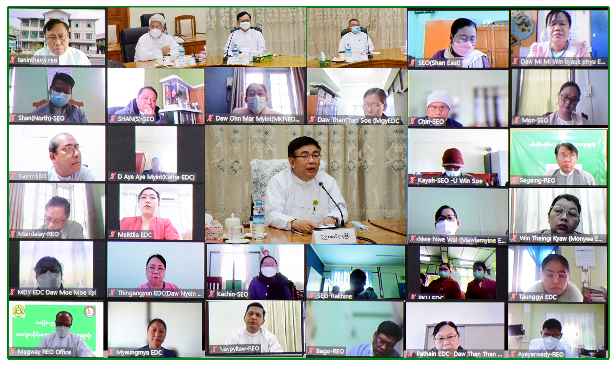ပညာရေးဝန်ကြီးဌာန၊ ပြည်ထောင်စုဝန်ကြီးနှင့် ဆရာအတတ်ပညာဦးစီးဌာန၏ ပညာရေးဒီဂရီကောလိပ် ကျောင်းအုပ်ကြီးများနှင့် အခြေခံပညာဦးစီးဌာန၏ တိုင်းဒေသကြီး/ ပြည်နယ်ပညာရေးမှူးများ လုပ်ငန်းညှိနှိုင်းအစည်းအဝေးကို ယနေ့ နံနက် ၉နာရီခွဲတွင် ပညာရေးဝန်ကြီးဌာန ရုံးအမှတ်(၁၃)ရှိ အစည်းအဝေးခန်းမ၌ ဗီဒီယိုကွန်ဖရင့်စနစ်ဖြင့် ကျင်းပသည်။