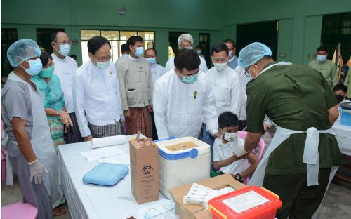ကာကွယ်ဆေးထိုးနှံပေးရာတွင် မြို့နယ်ပြည်သူ့ကျန်းမာရေးဦးစီးဌာနမှ တာဝန်ရှိသူများ၊ မြို့နယ်ဆေးရုံမှ ဆရာဝန်များနှင့် သက်ဆိုင်ရာ ကျန်းမာရေးဝန်ထမ်းများ၊ တပ်မတော်ဆေးအဖွဲ့မှ ဆရာဝန်များနှင့်တာဝန်ရှိသူများ၊ စေတနာ့ဝန်ထမ်းများနှင့် အထွေထွေအုပ်ချုပ်ရေးဦးစီးဌာနမှ ဝန်ထမ်းများပူးပေါင်း၍ ကာကွယ်ဆေးမထိုးမီ မိဘအုပ်ထိန်းသူ၏ ခွင့်ပြုချက်ရယူခြင်း၊ ကျောင်းသားကျောင်းသူများကို ကိုယ်အပူချိန် တိုင်းတာခြင်း၊ သွေးပေါင်ချိန်ခြင်း၊ ရောဂါအခံရှိ၊ မရှိ မေးမြန်းခြင်းနှင့် ကာကွယ်ဆေး ထိုးပြီးပါက ကျန်းမာရေးအတွက် ကာကွယ်နေထိုင်ရမည့် အစီအစဉ်များကို ပြောကြား ဆောင်ရွက်ပေးကြပြီး ကာကွယ်ဆေး ထိုးနှံပေးကြသည်။
