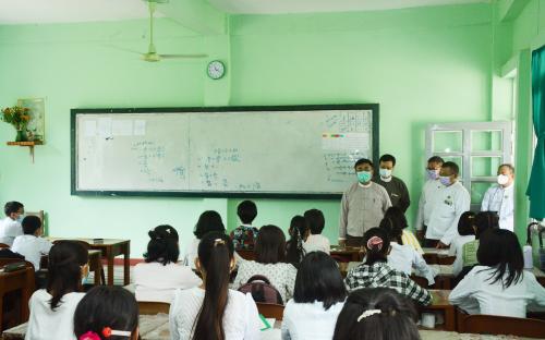 ပညာရေးဝန်ကြီးဌာန ပြည်ထောင်စုဝန်ကြီး ဒေါက်တာညွန့်ဖေသည် ဒုတိယဝန်ကြီးများ ဖြစ်ကြသော ဒေါက်တာဇော်မြင့်၊ ဦးဇော်ဝင်း၊ အခြေခံပညာဦးစီးဌာန ညွန်ကြားရေးမှူးချုပ် ဦးကျော်စွာသွင်တို့နှင့်အတူ ယနေ့နံနက် ၁၀း၃၀နာရီတွင် နေပြည်တော် ဇမ္ဗူသီရိမြို့နယ် အမှတ်(၉) နှင့် အမှတ်(၁၁) အခြေခံပညာအထက်တန်းကျောင်းများသို့ သွားရောက်ကြည့်ရှုစစ်ဆေး၍ အဆိုပါ ကျောင်းများရှိ စာသင်ခန်းများတွင် ပညာသင်ကြားပေးနေသည့် ဆရာ ဆရာမများ၊ အေးချမ်းစွာပညာ သင်ယူနေသည့် ကျောင်းသား ကျောင်းသူများကို ရင်းရင်းနှီးနှီးတွေ့ဆုံ အားပေးစကား ပြောကြားသည်။