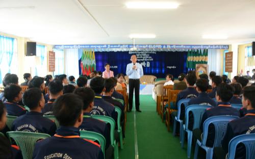 ထိုသို့တွေ့ဆုံစဉ် ဒုတိယဝန်ကြီးက ကျောင်းသား ကျောင်းသူများအနေဖြင့် စာကြိုးစားကြမှသာလျှင် နောင်တစ်ချိန်တွင် ဆရာ ဆရာမ ကောင်းများဖြစ်လာမည် ဖြစ်သည့်အတွက် စာကြိုးစားကြရမည် ဖြစ်ကြောင်း၊ ပညာရေးလုပ်ငန်းများ ဆောင်ရွက်ရာတွင် အားကစားသည်လည်း အရေးကြီးသည့် အခန်းကဏ္ဍတွင်ပါရှိပြီး ကိုယ်လက်ကျန်းမာ ကြံ့ခိုင်ရေးအတွက် အားကစားကဏ္ဍကိုလည်း စိတ်ပါဝင်စားစွာ ဆောင်ရွက်ကြစေလိုကြောင်း၊ ဆရာ ဆရာမများ အနေဖြင့်လည်း အနာဂတ်တွင် ဆရာ ဆရာမများ ဖြစ်လာမည့် ကျောင်းသား ကျောင်းသူများကို စေတနာထား၍ သင်ကြားပြုစုပျိုးထောင် ပေးကြစေလိုကြောင်း ပြောကြားသည်။