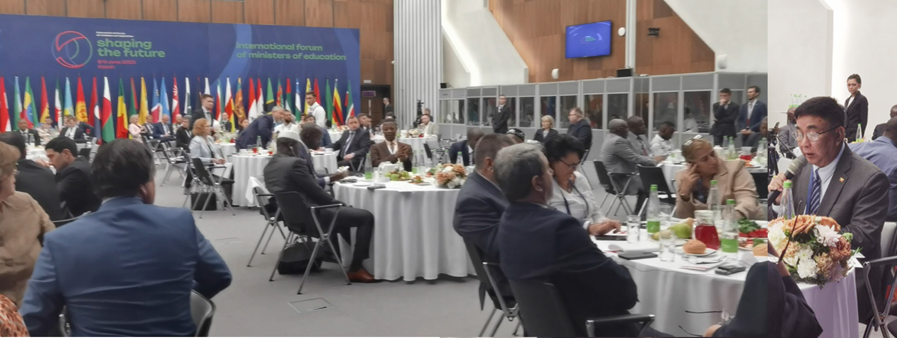 ယင်းနောက် ရုရှားဖက်ဒရေးရှင်းနိုင်ငံ ပညာရေးဝန်ကြီး Sergey Sergeevich Kravstov က တက်ရောက်လာသည့် နိုင်ငံအသီးသီးမှပညာရေးဝန်ကြီးများ၊ ကိုယ်စားလှယ်များနှင့်ထပ်မံတွေ့ဆုံဆွေးနွေးပြီး အမှတ်တရ စုပေါင်းဓာတ်ပုံရိုက်ကြသည်။